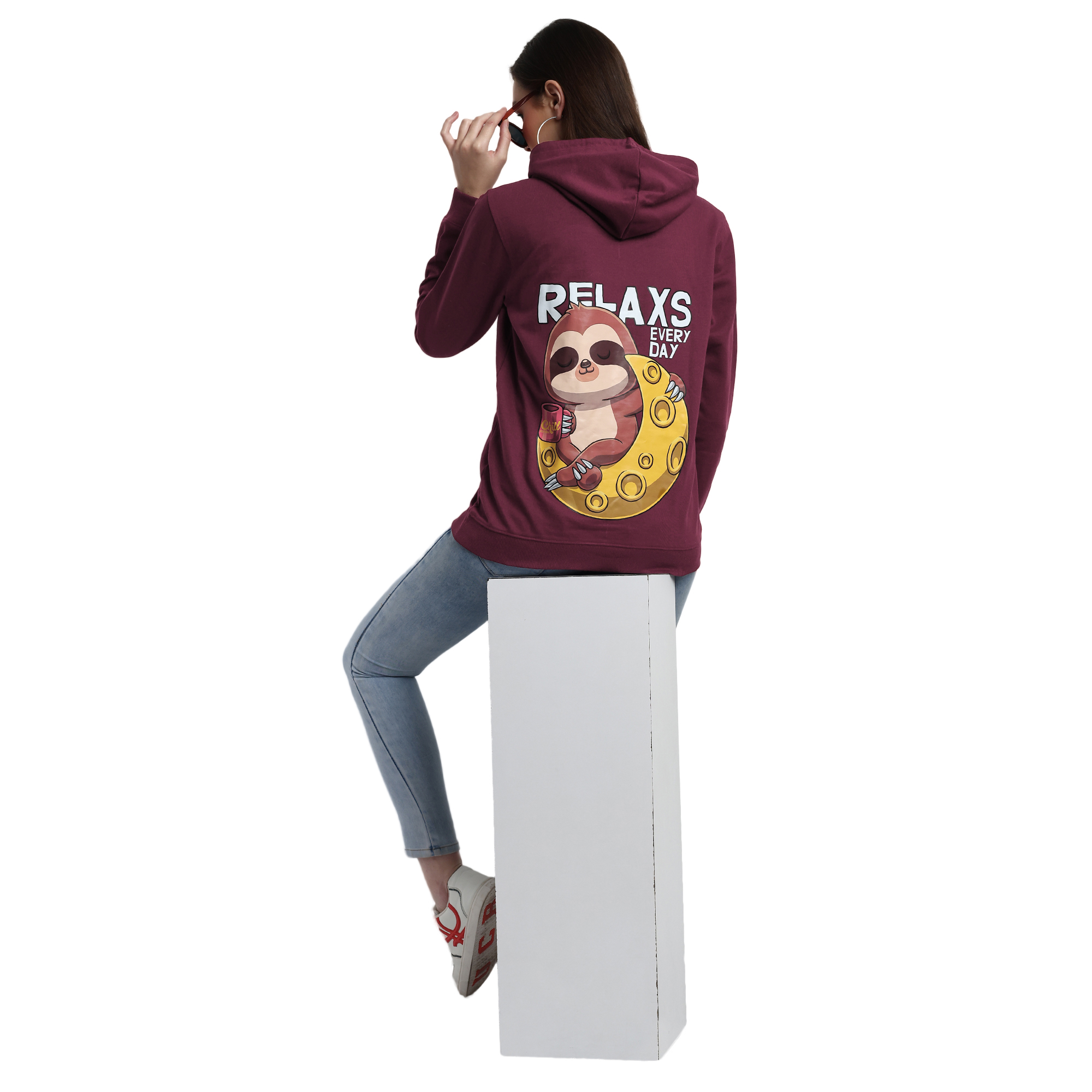 This sweatshirt is unique in style and nature. It feels soft and lightweight, with the right amount of stretch. It’s comfortable and flattering.