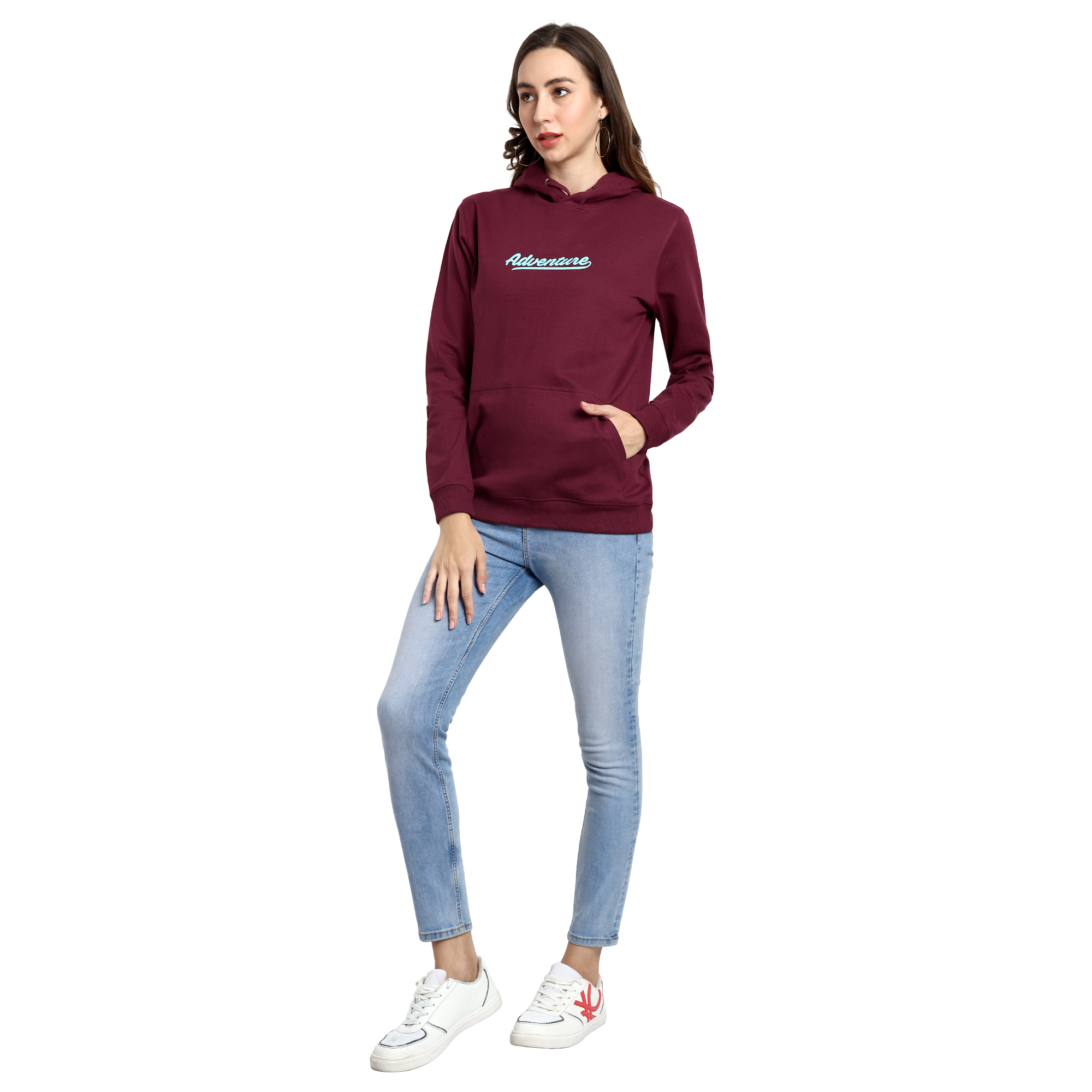 This sweatshirt is unique in style and nature. It feels soft and lightweight, with the right amount of stretch. It’s comfortable and flattering.
